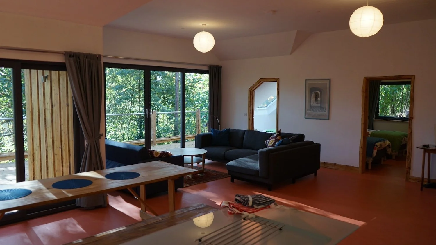 The Bothy has a large open-plan sitting and dining area with vast picture windows overlooking the river through the surrounding woodland. There’s lots of wildlife and birds to observe for those who are happy to sit patiently on the sofa and watch, or alternatively, there’s the veranda if you fancy a a spot of ‘forest bathing’.